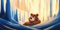Whimsical Journey of a Smiling Bear in a Surreal Landscape