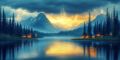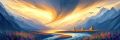 Enchanted Sunset Over Tranquil Lake and Majestic Mountains