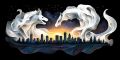 Mystical Wolves Over Edmonton's Skyline at Twilight