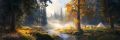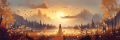 Autumn Harmony: Deers and Teepees Amidst a Forest Glow