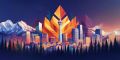 Vibrant Geometric Interpretation of Edmonton's Skyline Amidst Nature