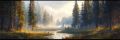 Enchanting Sunrise Over Serene Forest Lake with Misty Ambiance