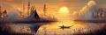 Serene Sunset by the Lake: A Dreamy Landscape Canvas