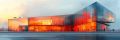 Vibrant Mosaic of Sunset Hues: Modern Architecture Meets Nature