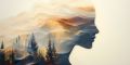 Serene Fusion of Nature and Mind: Artistic Profile Silhouette