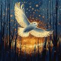 Enchanted Twilight: Snowy Owl Glides through Mystical Forest