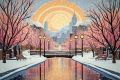 Tranquil Winter Morning in Edmonton: A Scenic Digital Illustration