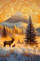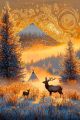 Autumn Harmony: Deers and Teepees Amidst a Forest Glow