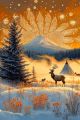 Majestic Winter Twilight: Elk and Teepees under a Starry Sky