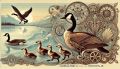 Majestic Canada Geese at Dawn, Art Nouveau Meets Steampunk in Edmonton