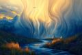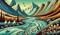 Surreal Landscape Art of Alberta's Majestic River and Mountains