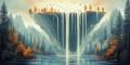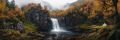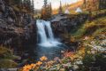 Autumn's Embrace Around a Tranquil Waterfall in a Scenic Landscape