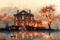 Enchanted Autumn Evening: Luminous Manor Reflections