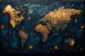 Golden Sparks on Blue Canvas: A Captivating World Map Art Installation