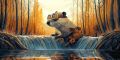 Autumn Run in Mill Creek Ravine: A Vivid Pop Surrealist Vision
