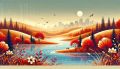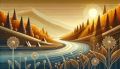 "Golden Hues of Edmonton's River: A Digital Illustration of Alberta's Landscape"
