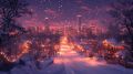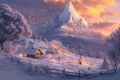 Twilight Glow over Snow-Covered Village in Enchanted Winter Landscape