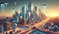 Winter Dawn in Futuristic Edmonton: Neon Skyscrapers and Hovering Vehicles