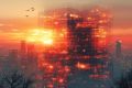 Sunset Illuminates Cybernetic Skyline in Futuristic Edmonton Art