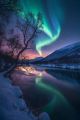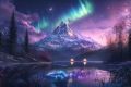Enchanting Northern Lights Over Snow-Capped Mountain and Serene Lake