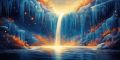 Enchanting Twilight Waterfalls Amid Icy Cliffs and Glowing Embers