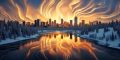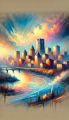 Vibrant Expressionist Reflections of Edmonton's Skyline at Sunset