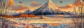 Majestic Winter Landscape with Volcanic Mountain and Ethereal Sky