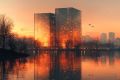 Sunset Reflections on Edmonton's Modern Skyline Silhouettes