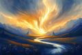 Sunlit Journey Down Alberta's Geometric River Through Artistic Strokes