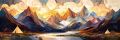 Majestic Sunset Over Mountain Lake with Reflective Waters and Camping Site