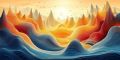 Surreal Landscape of Vivid Waves and Mountain Ranges