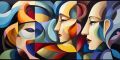 Colorful Cubist Faces Blend in Abstract Elegance on Canvas