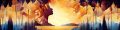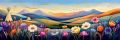 Enchanting Sunset and Flourishing Meadows in a Stylized Landscape