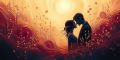 Enchanting Sunset Embrace: A Surreal Vision of Love Amidst Nature