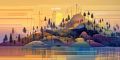 Gustav Klimt-Inspired Riverside Landscape in Alberta, Canada