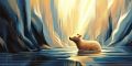 Golden Sunlight Cascades Over Tranquil Bear in Serene Waterscape
