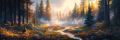 Sunrise Illuminates a Misty Forest and Tranquil Stream in Edmonton
