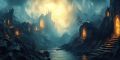 Enchanted Twilight: A Mystical Castle by the Lake under Moonlight