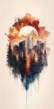 Autumnal Serenity in Edmonton: A Digital Illustration of Nature Meets City
