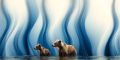 Serene Moment with Mother Bear and Cub in Ephemeral Waterscape