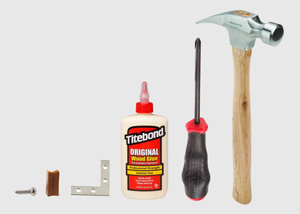 If you choose to add corner braces after the glue is dried, place the corner brace flat over the top of the corner, this should fit best in between the two keys. With a screwdriver, screw in the frame onto the corner of the moulding.